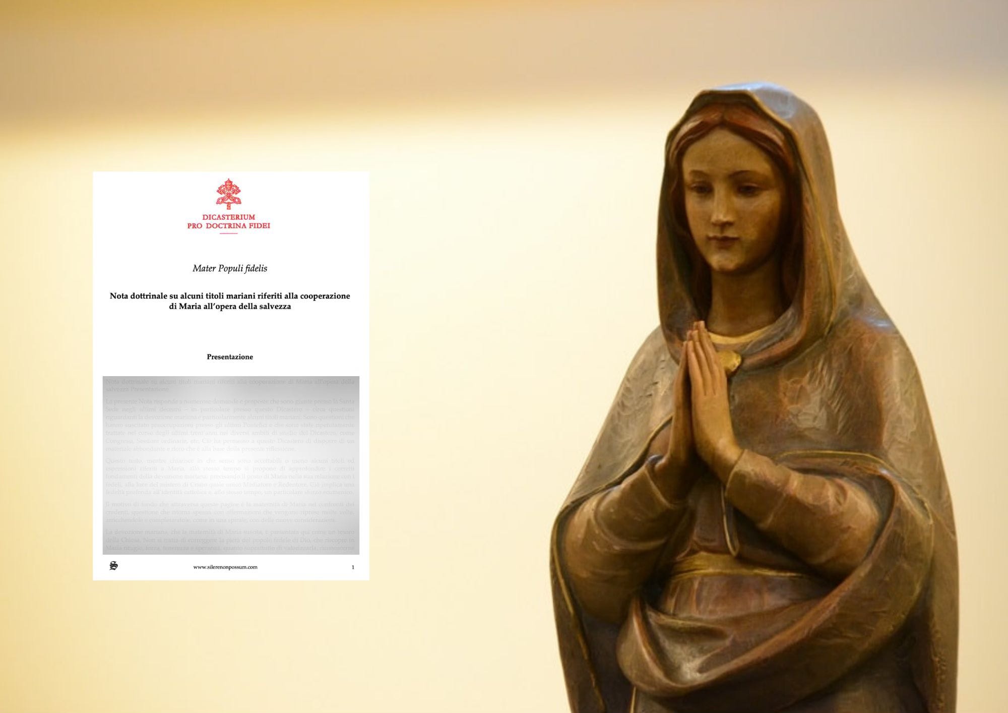 Città del Vaticano – Domani, 4 novembre 2025, il Dicastero per la Dottrina della Fede renderà pubblico un documento che Silere non possum offre oggi ai propri lettori in esclusiva. Con la pubblicazione di questa Nota dottrinale, Mater Populi fidelis, l’ex Sant’Uffizio offre un’ampia e articolata riflessione su alcuni titoli attribuiti alla Vergine Maria nel corso della storia e sulle loro implicazioni teologiche e pastorali.